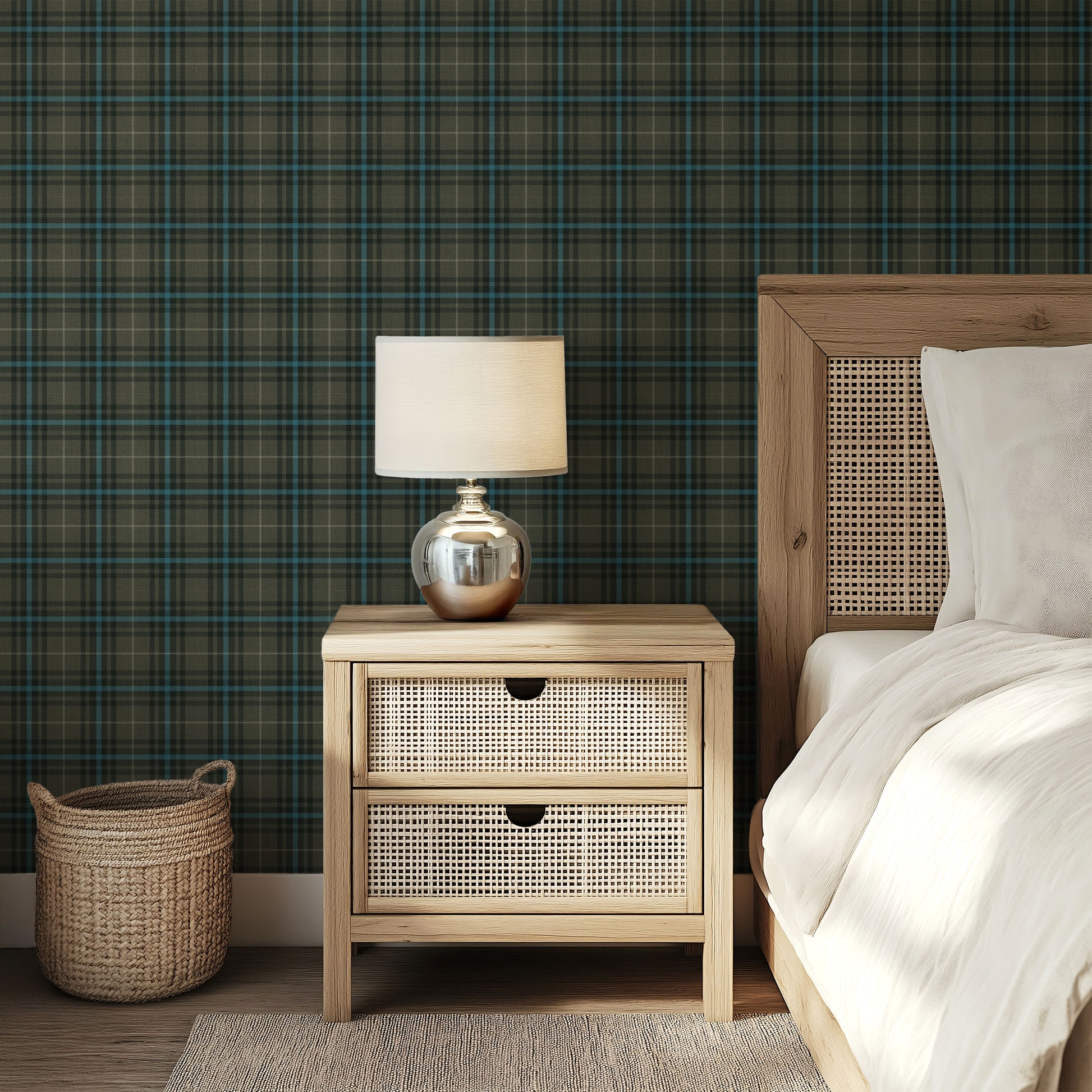 Inverness Check Wallpaper brings timeless elegance to any room with its classic plaid pattern rendered in rich golfer's green and stunning accent tones. Inspired by heritage Scottish design, this sophisticated wallcovering combines old-world charm with contemporary appeal. Perfect for creating a refined accent wall or enveloping a space in traditional luxury, the geometric precision of the check pattern adds depth and visual interest without overwhelming. Ideal for studies, libraries, or bedrooms seeking understated distinction.